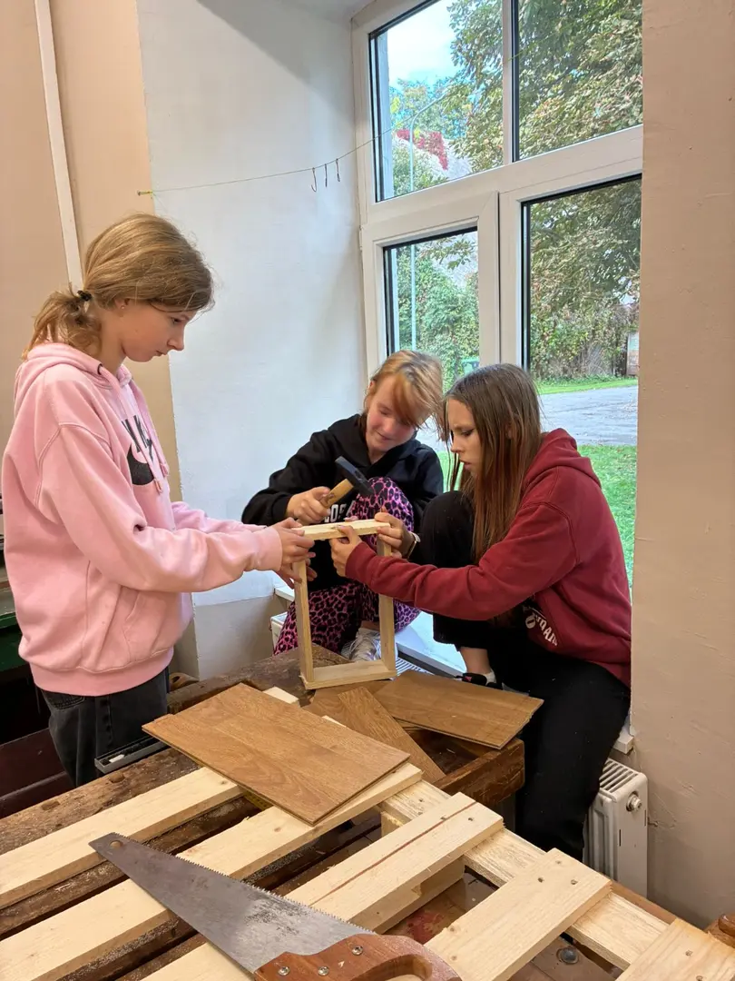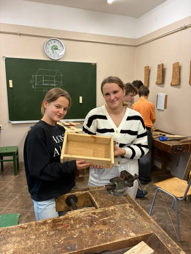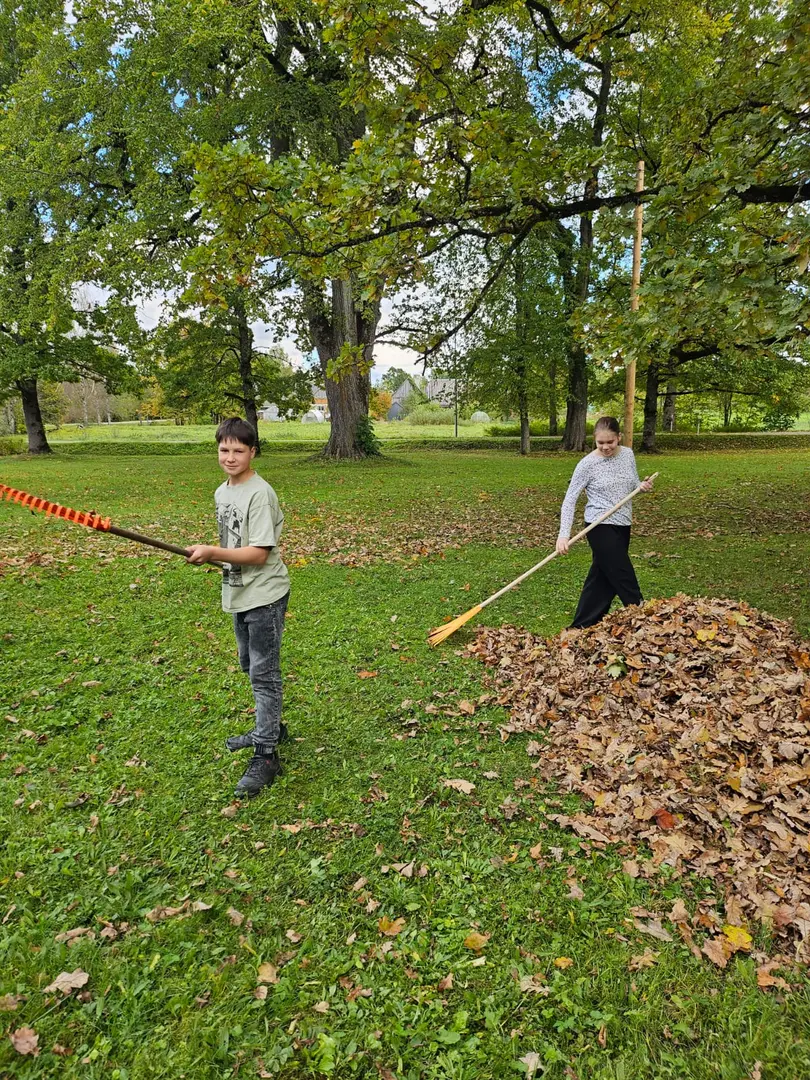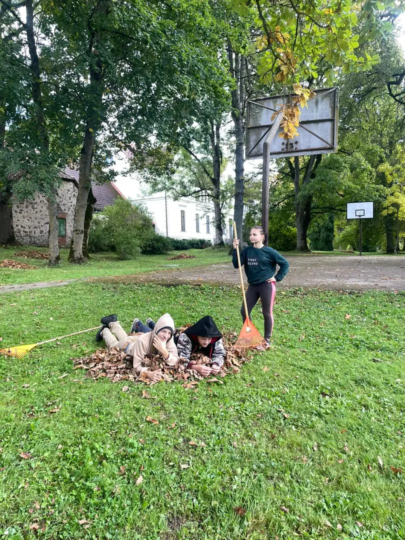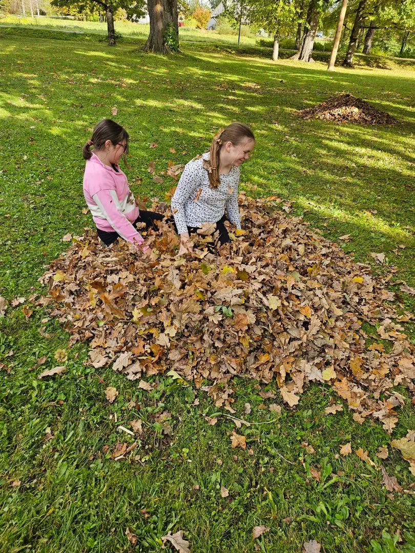 5. un 8. klase sakopa skolas teritoriju, bet 6. un 7. klase jau sāka gatavoties vēsākam laikam un izgatavoju putnu barotavas ziemai.