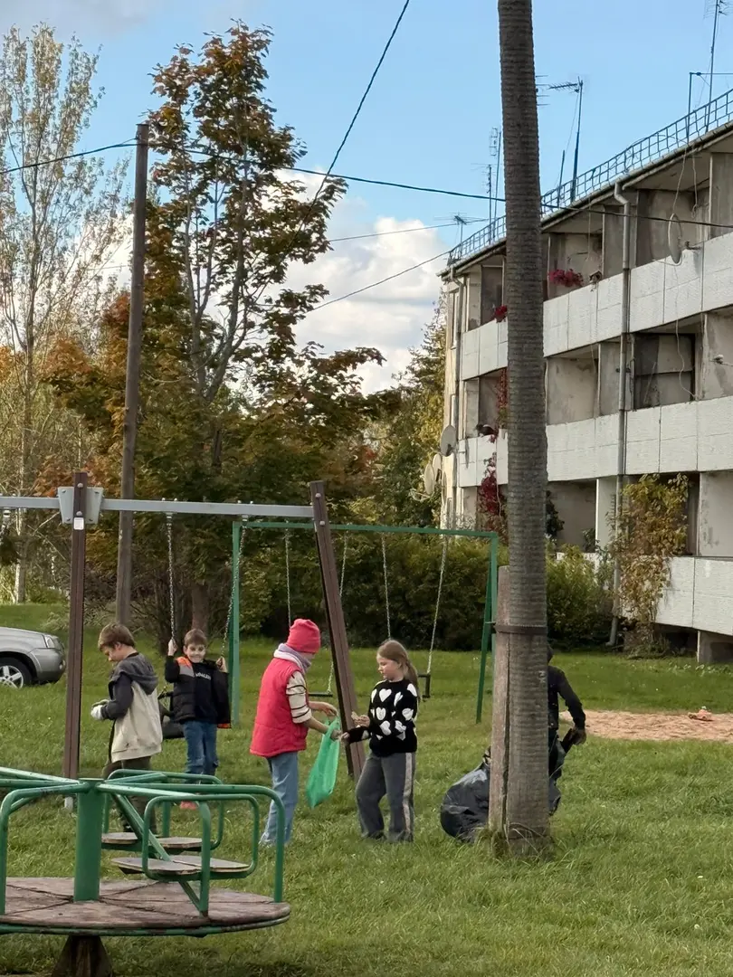 3. klase sakopa apmeklētāko rotaļlaukumu pagasta centrā, kurā paši ikdienas spēlējas.