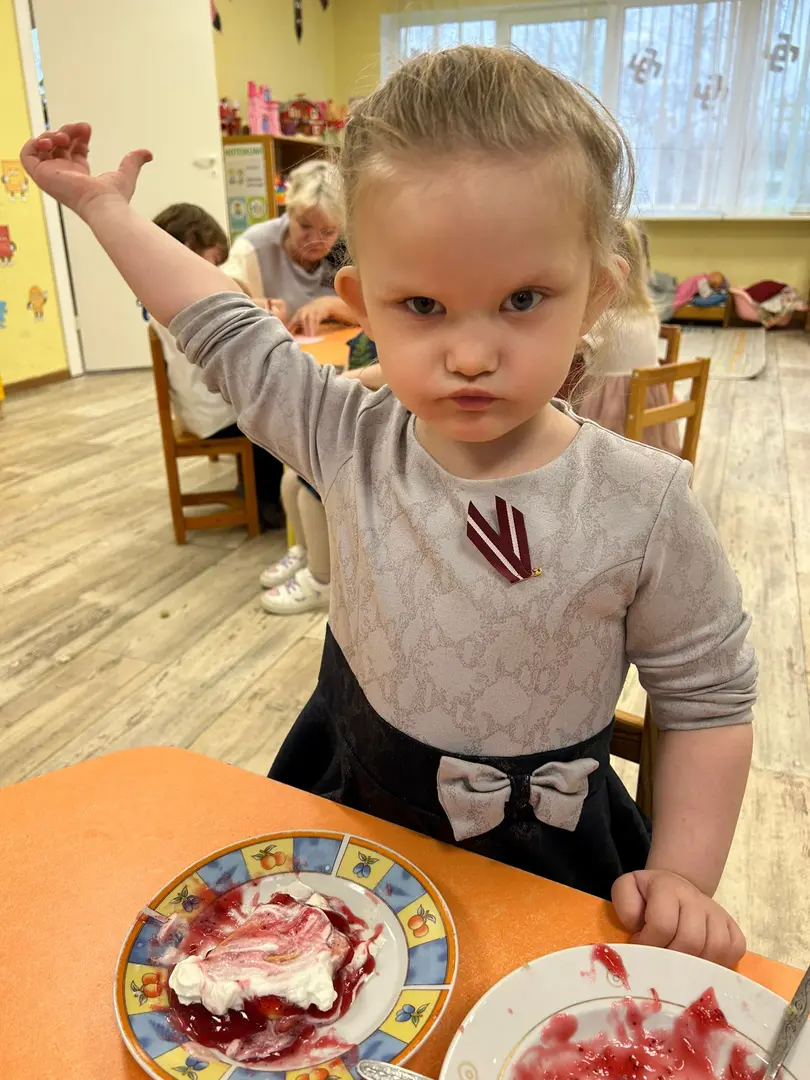 Bērni kopā gatavoja “svētku kūku Latvijai”, veidoja sirsniņas, dziedāja dziesmas un piedalījās rotaļās par mūsu skaisto zemi. Kopīgi klājām svētku galdu, iededzām sveci un, skanot Latvijas himnai, godinājām mūsu valsti.