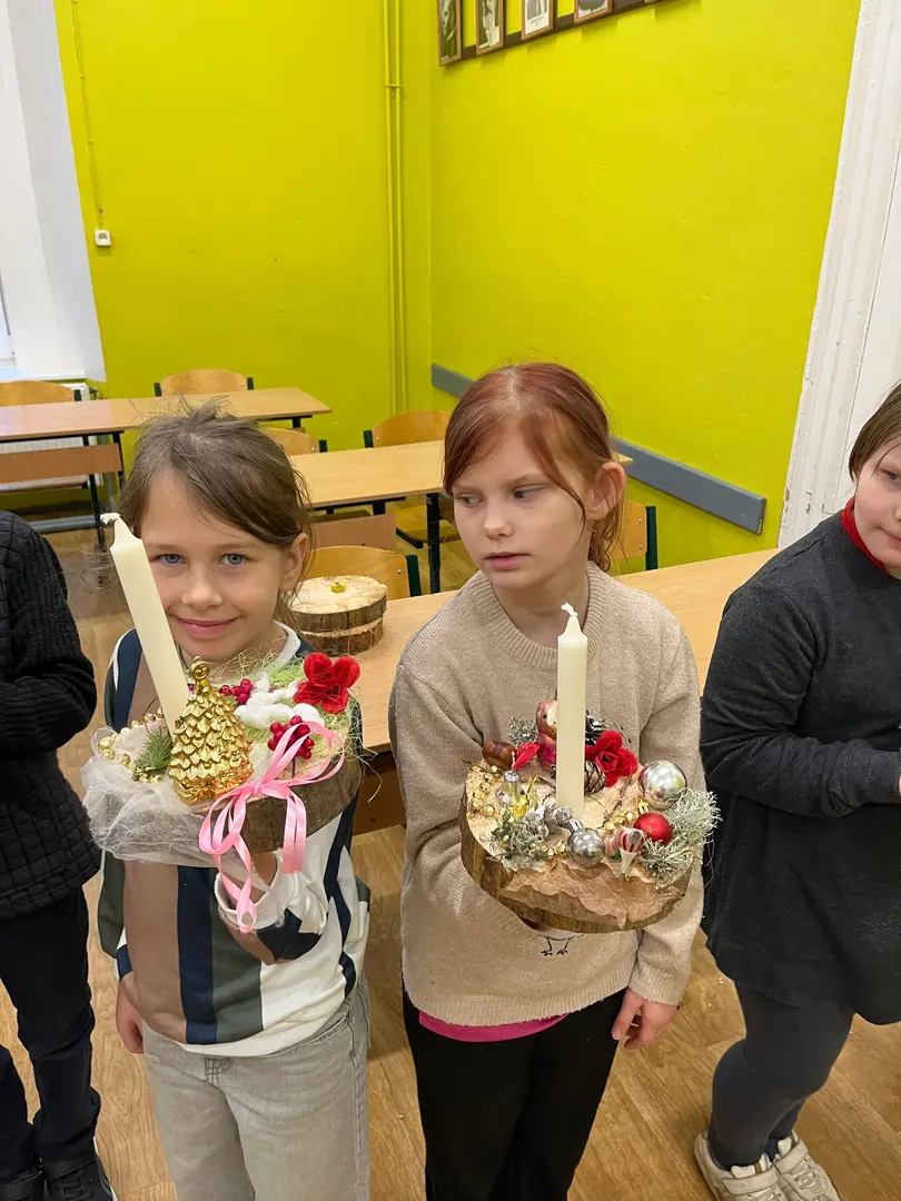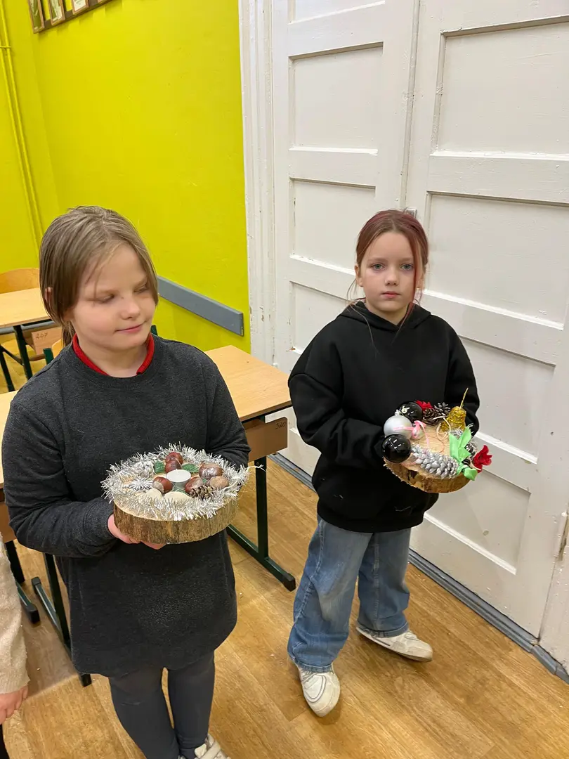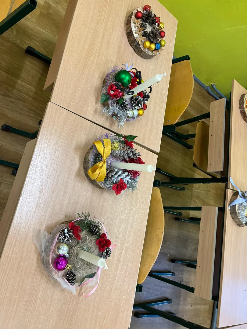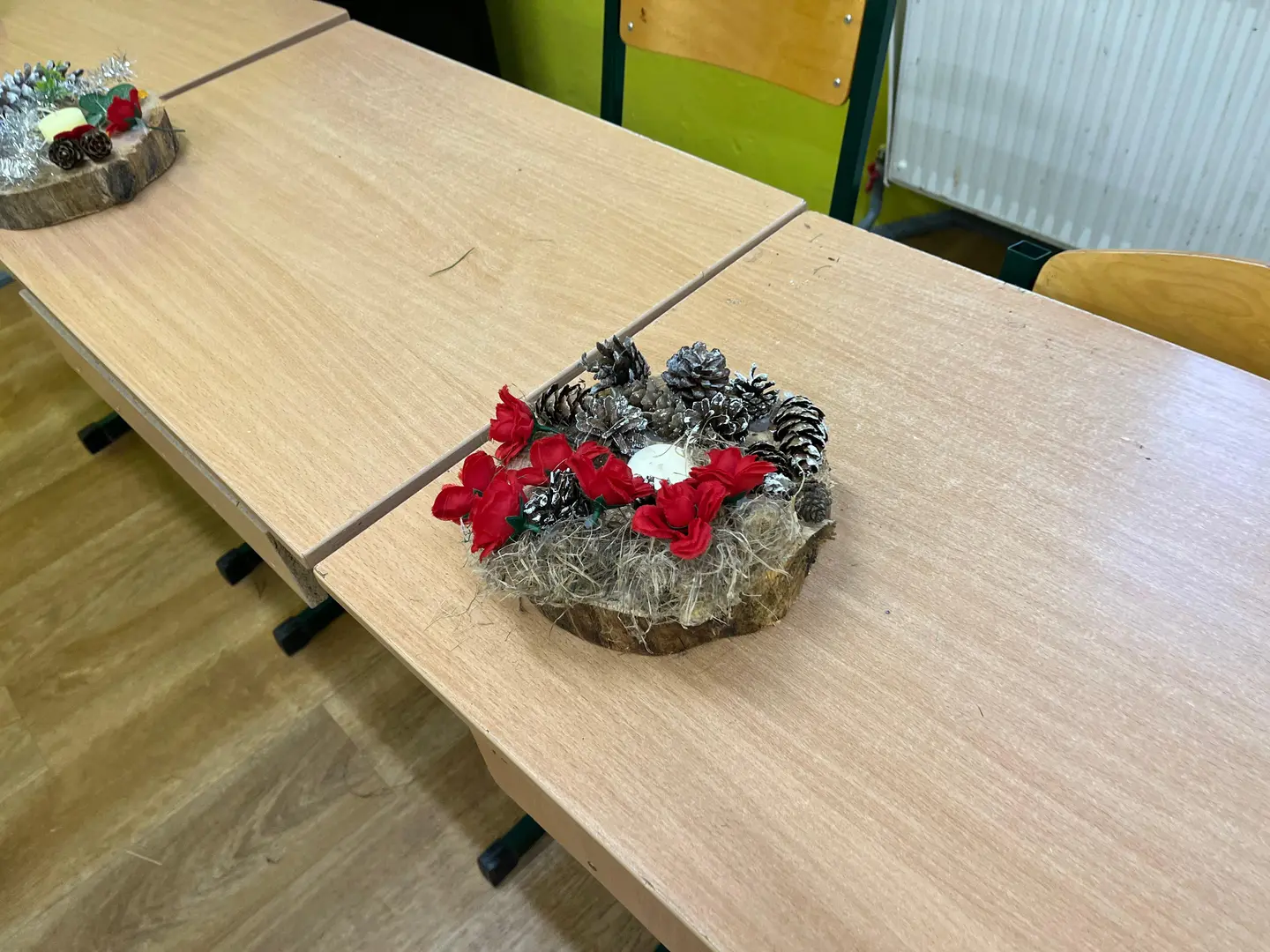 Pēcāk bērni devās iepriecināt skolotājas — tagad teju katrā klasē būs adventes kompozīcija!