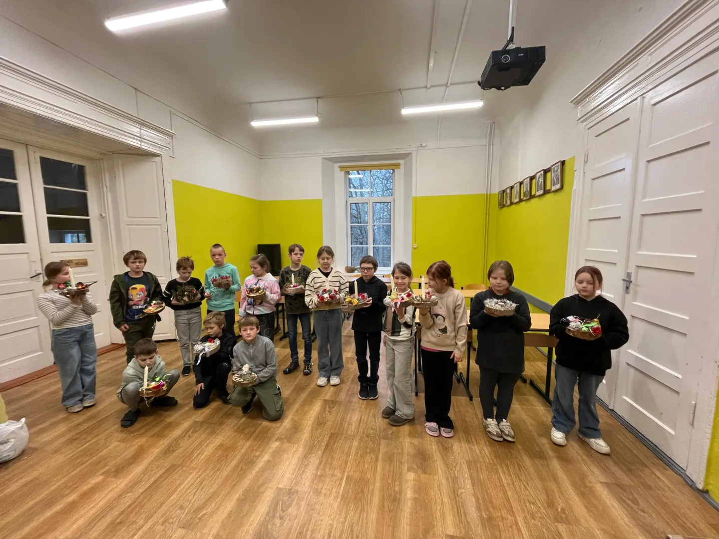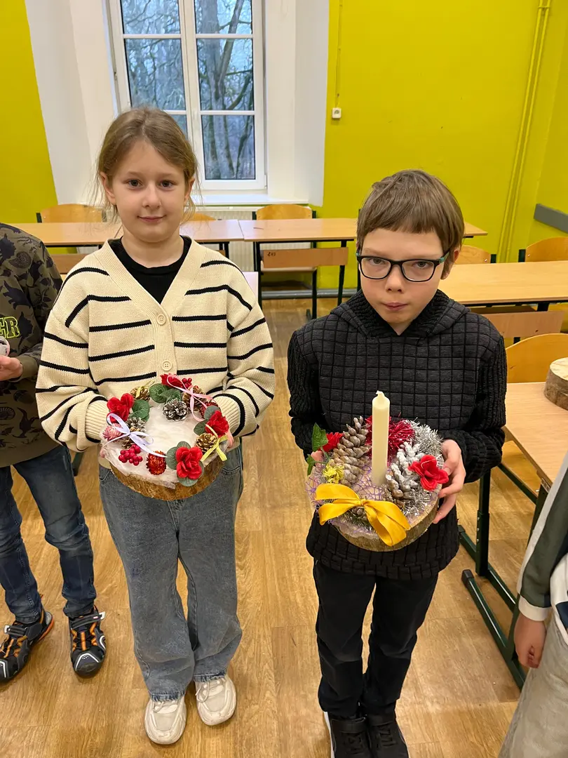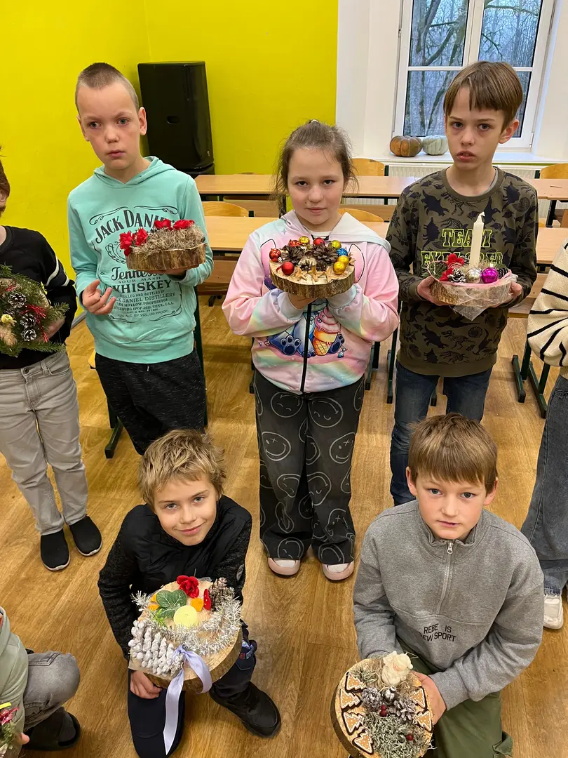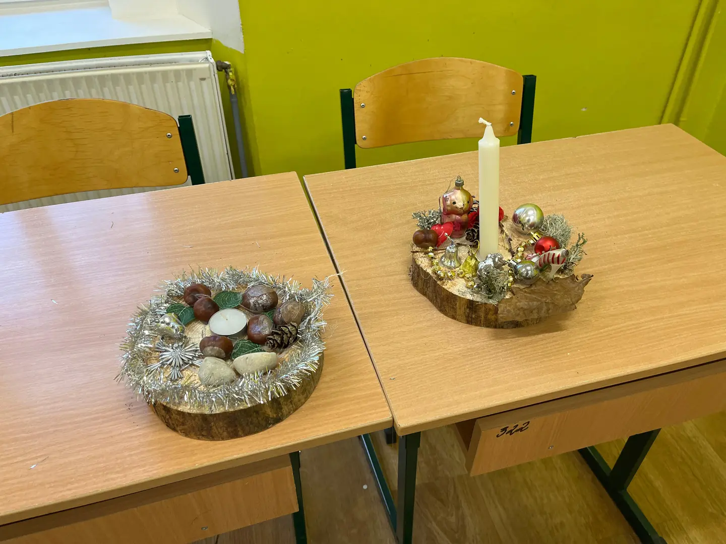 Pēcāk bērni devās iepriecināt skolotājas — tagad teju katrā klasē būs adventes kompozīcija!