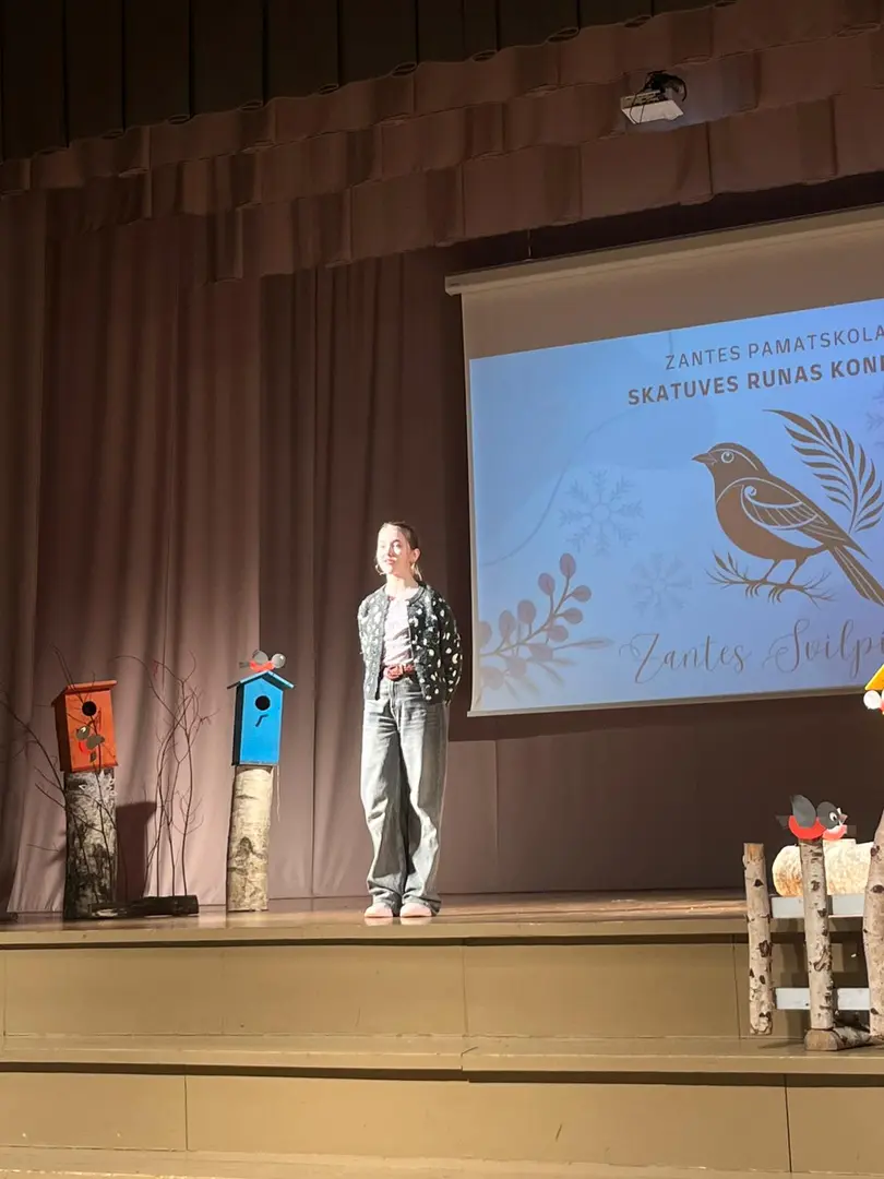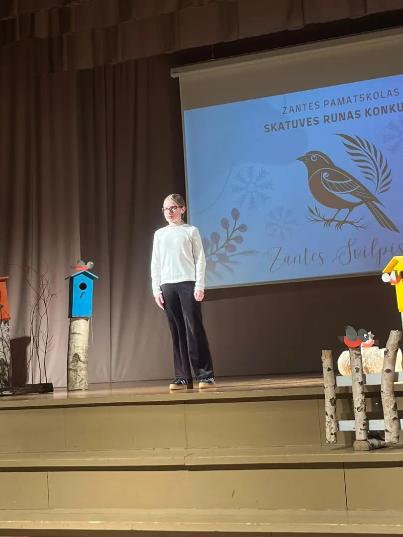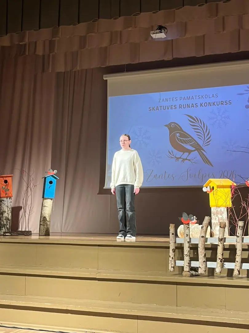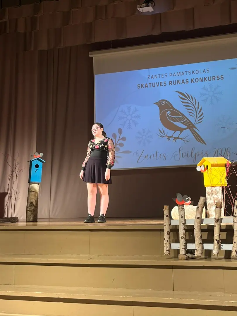 Zantes skolā aizvadīts ikgadējais skatuves runas konkurss “Zantes svilpis 2026”, kurā skolēni ar pārliecību, emocijām un izteiksmīgu valodu pierādīja vārda spēku uz skatuves.
