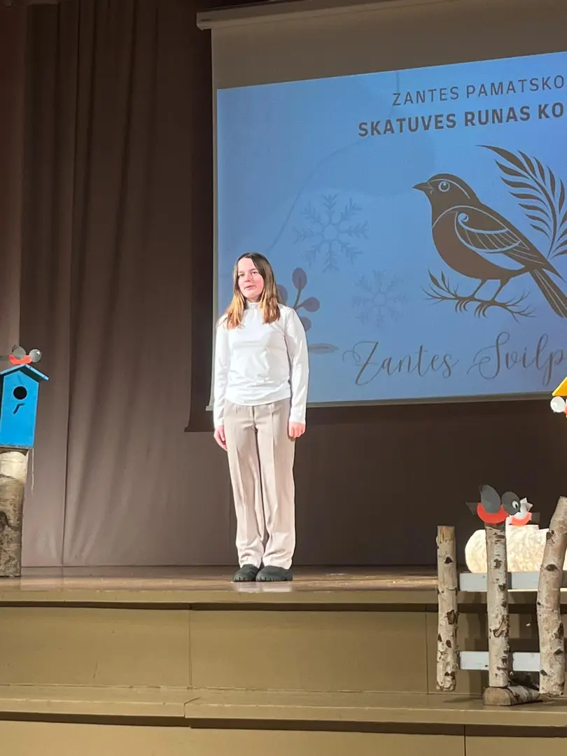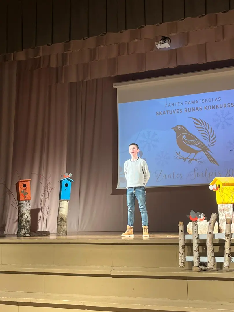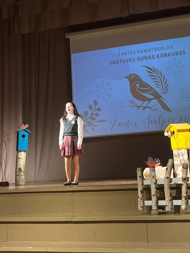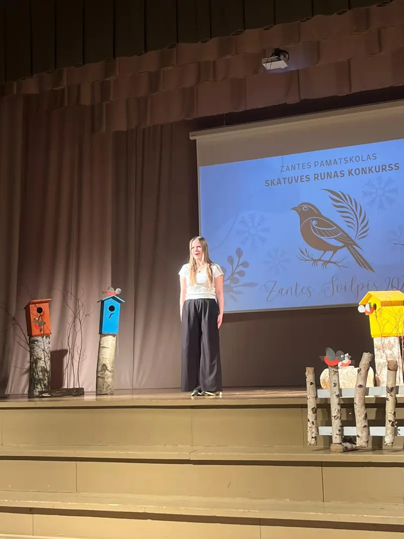 Zantes skolā aizvadīts ikgadējais skatuves runas konkurss “Zantes svilpis 2026”, kurā skolēni ar pārliecību, emocijām un izteiksmīgu valodu pierādīja vārda spēku uz skatuves.