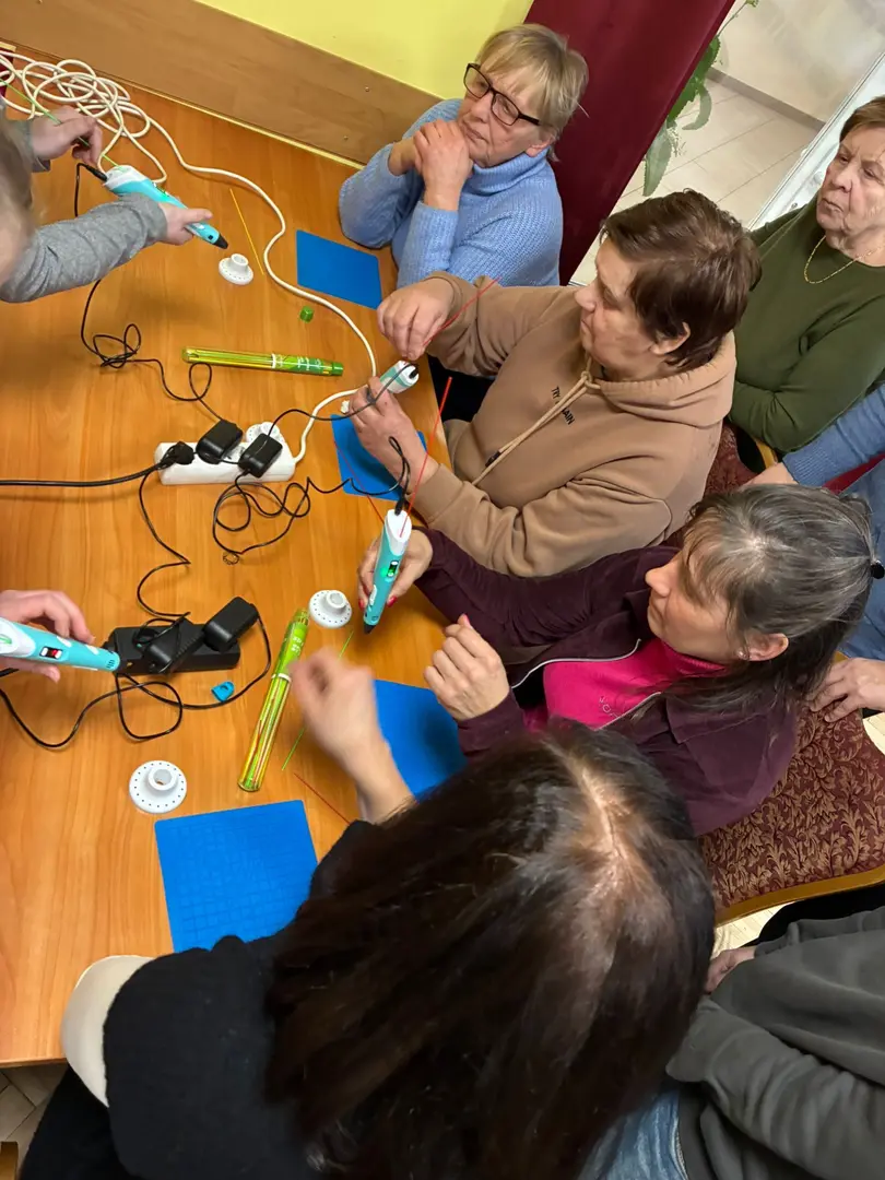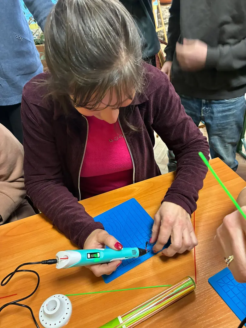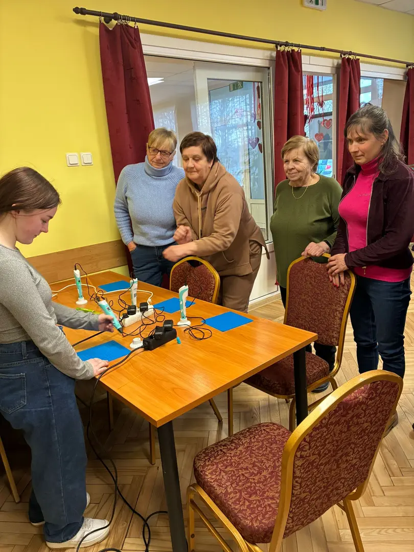 Savukārt, jaunieši senioriem mācīja iepazīt jaunas tehnoloģijas. Darbs ar 3D pildspalvām bija jauna pieredze. Katram bija iespēja izveidot savu atslēgas piekariņu. Jaunieši iejutās atbildīgās lomās un katram senioram palīdzēja tikt pie sava suvenīra.