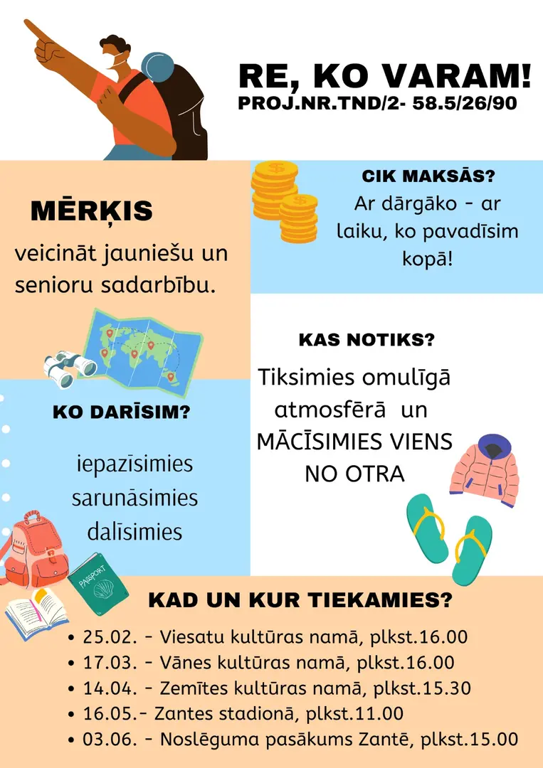 2026.gada 25.februārī Viesātu kultūras namā notika Zantes jauniešu biedrības “ES-Tev, Tu-man” organizētā iniciatīva projektā “Re, ko varam!”, kas ir Tukuma novada pašvaldības finansēta (Projekta Nr. TND/2-58.5/26/90)