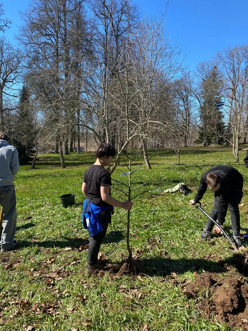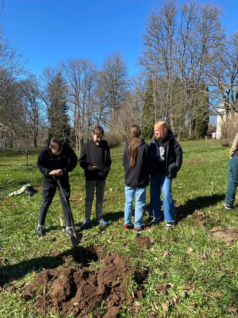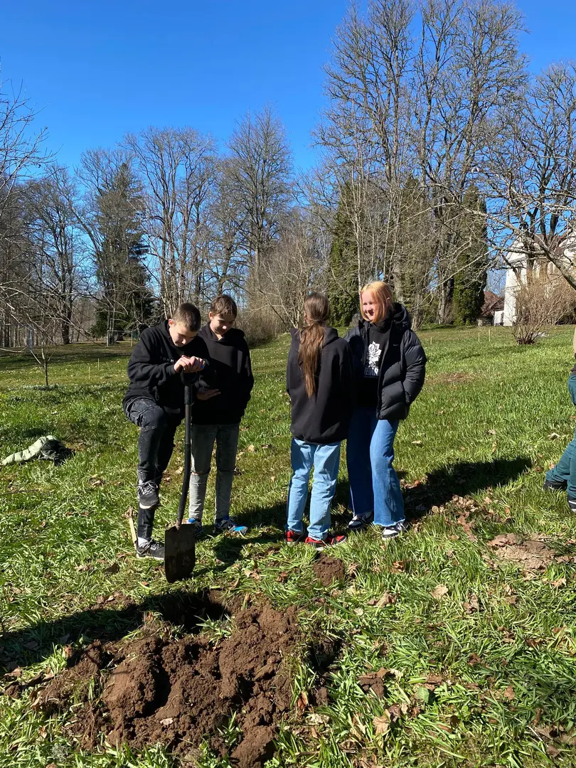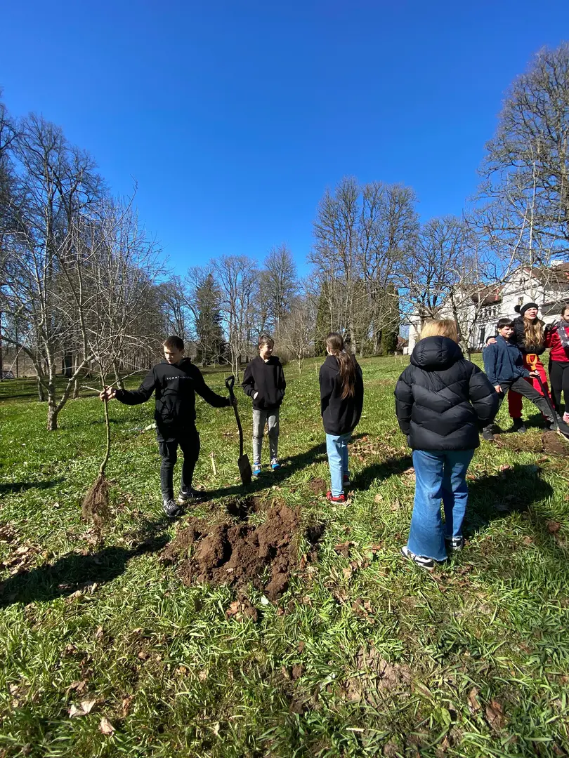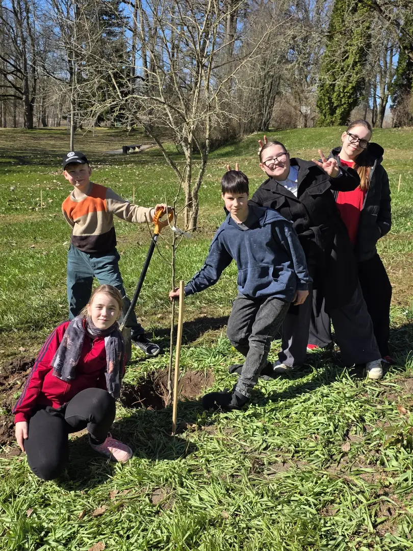 2.aprilī - zaļajā ceturtdienā mūsu skolā pēcpusdiena pagāja īpaši rosīgi. Sadarbībā ar “Reāls piedzīvojums” katrai klasei bija iespēja iestādīt skolas augļu dārzā savu ābelīti.