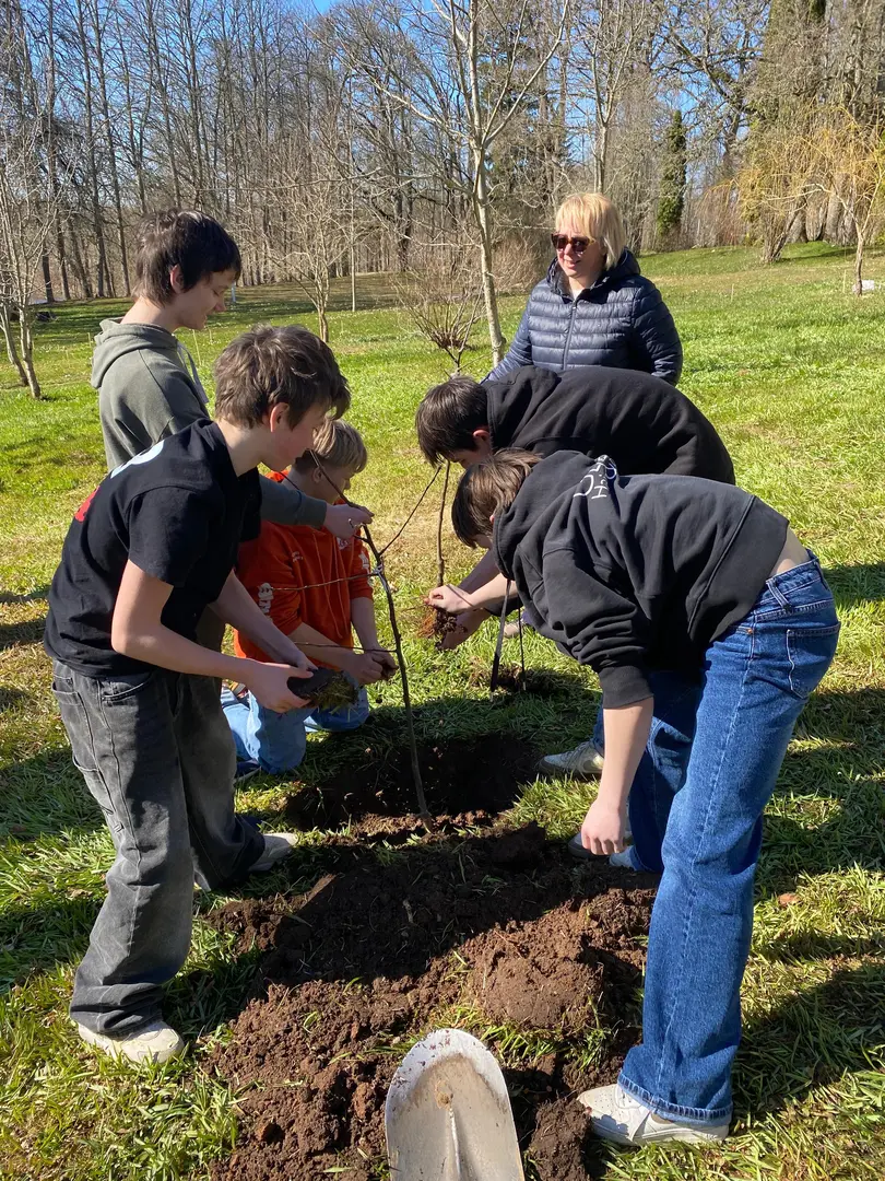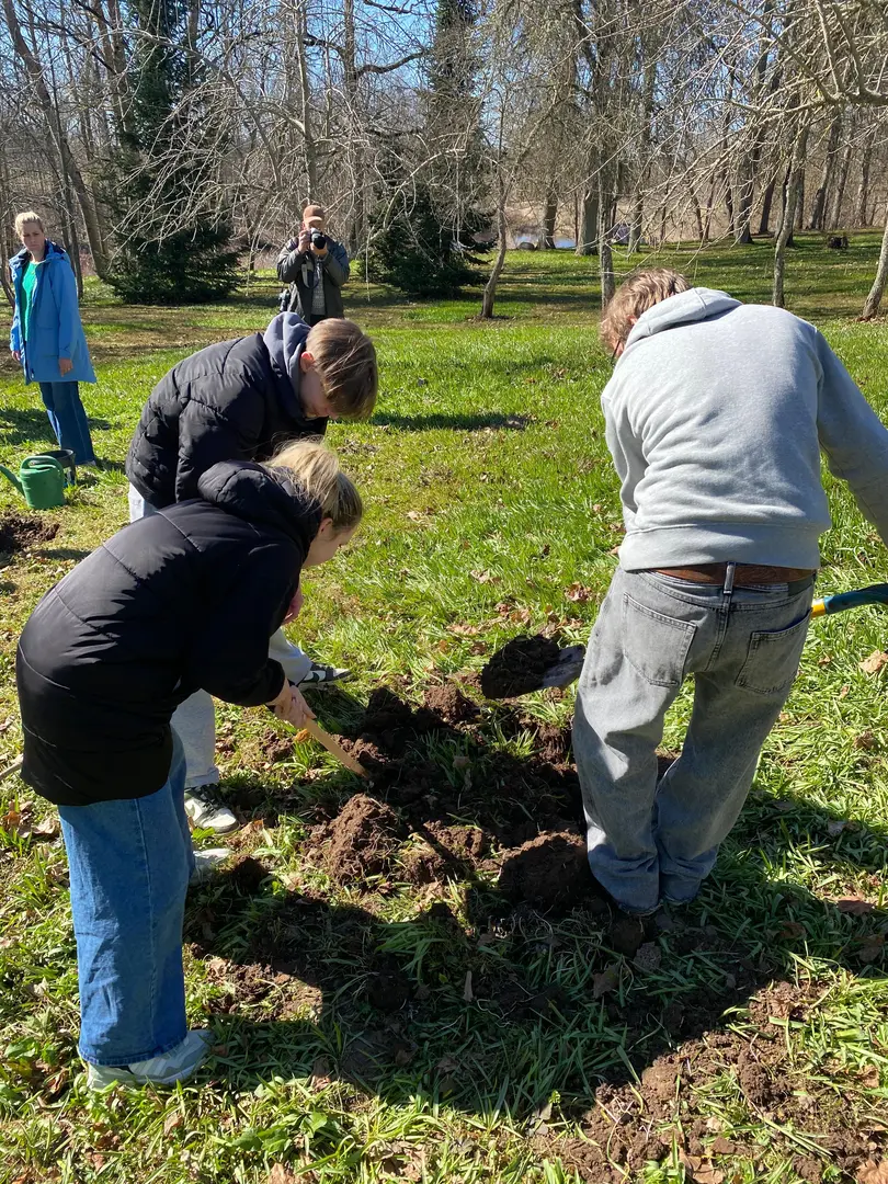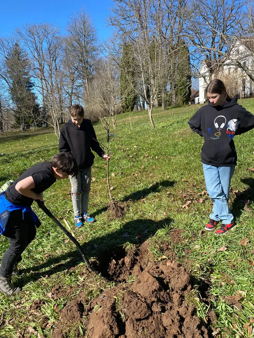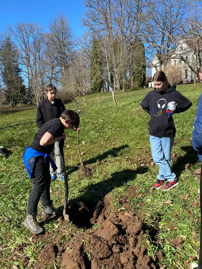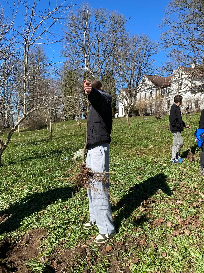 2.aprilī - zaļajā ceturtdienā mūsu skolā pēcpusdiena pagāja īpaši rosīgi. Sadarbībā ar “Reāls piedzīvojums” katrai klasei bija iespēja iestādīt skolas augļu dārzā savu ābelīti.