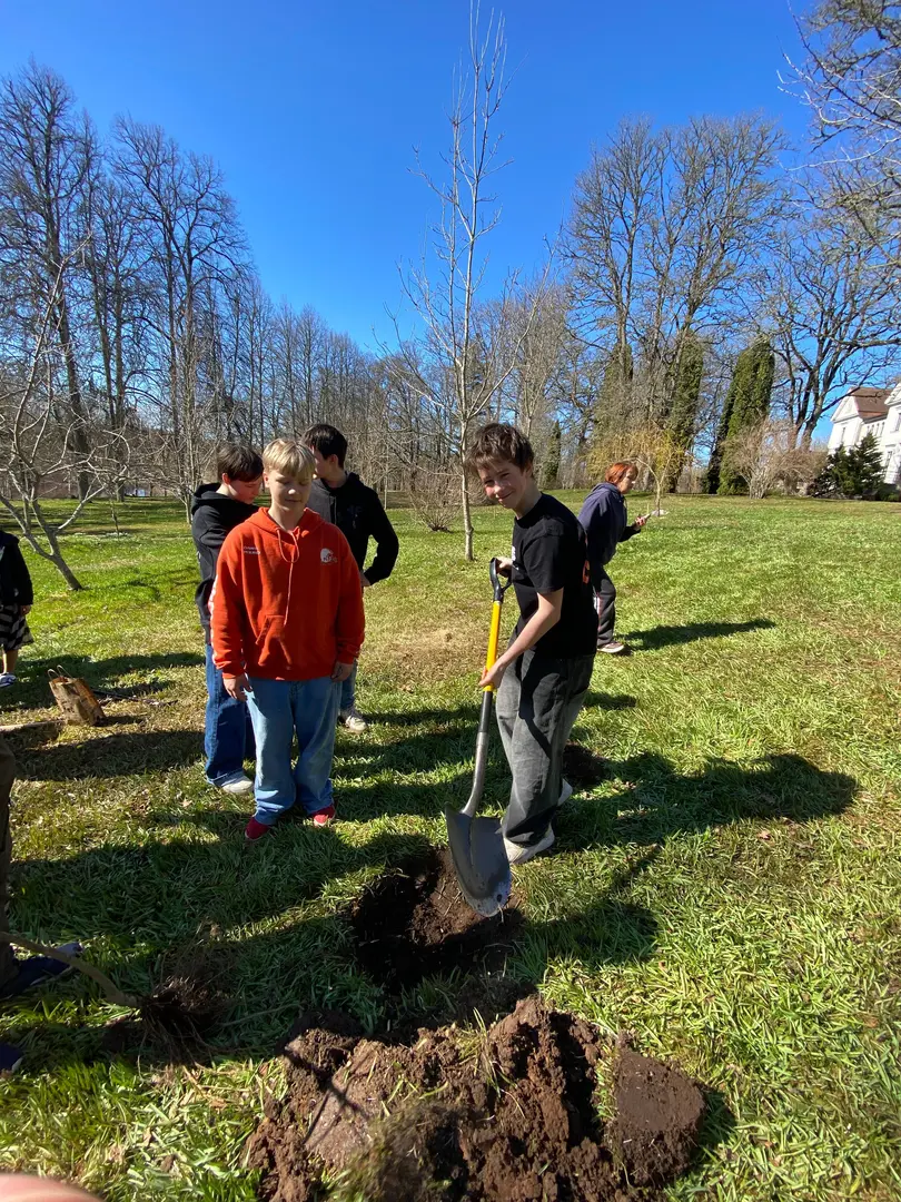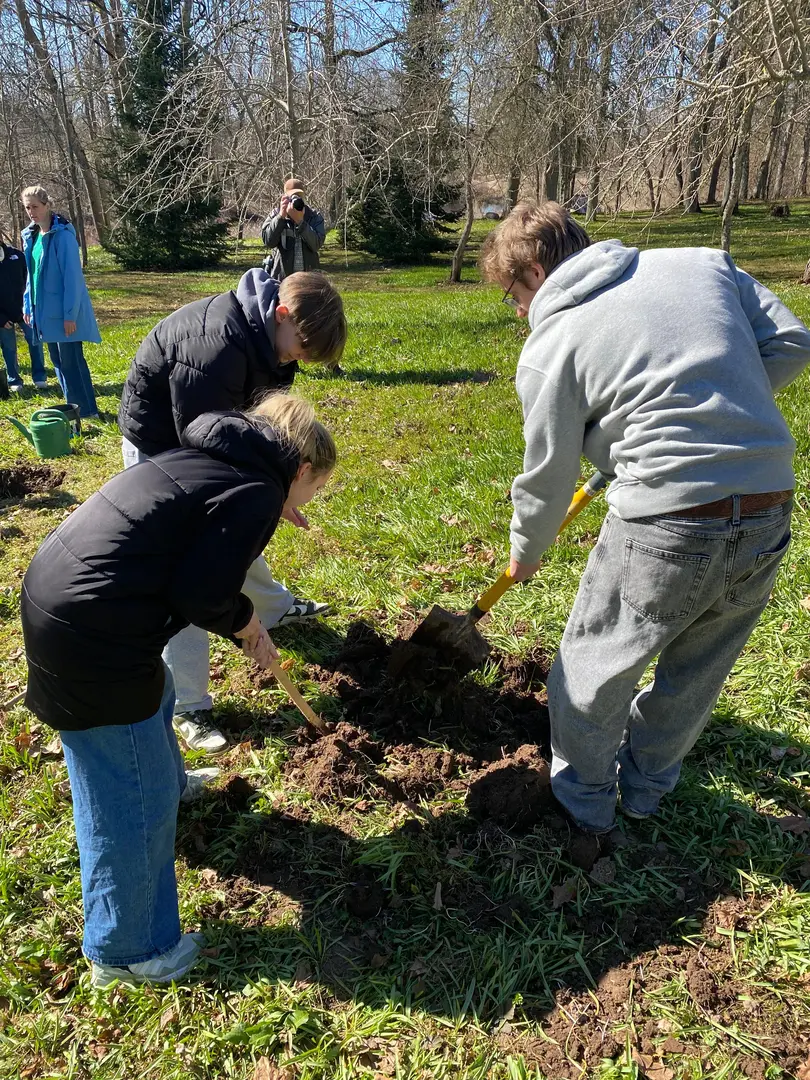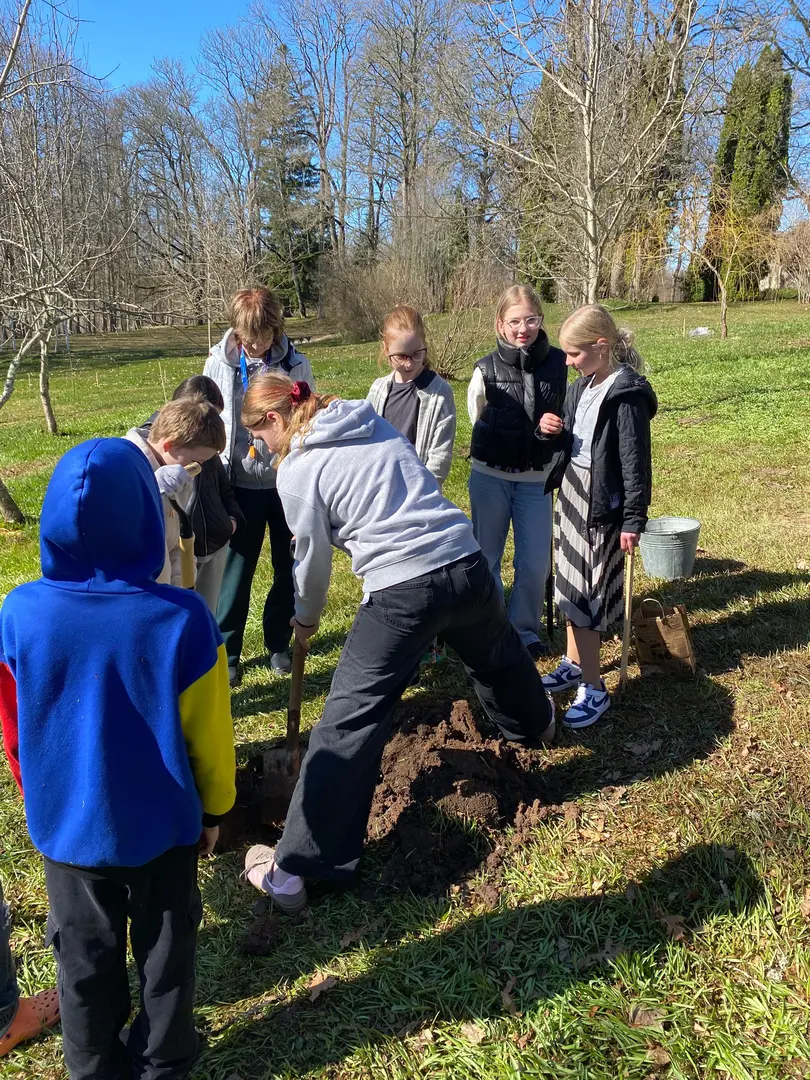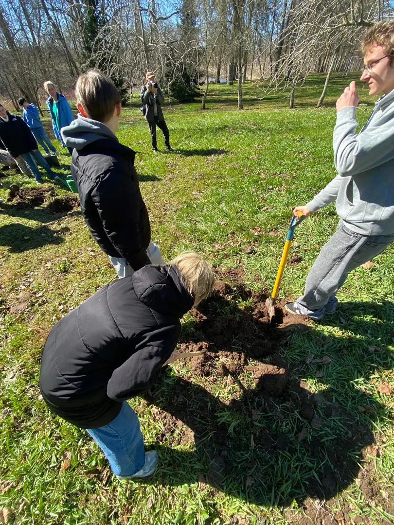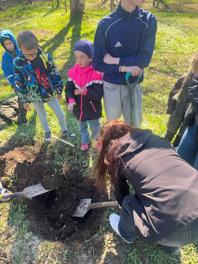 2.aprilī - zaļajā ceturtdienā mūsu skolā pēcpusdiena pagāja īpaši rosīgi. Sadarbībā ar “Reāls piedzīvojums” katrai klasei bija iespēja iestādīt skolas augļu dārzā savu ābelīti.