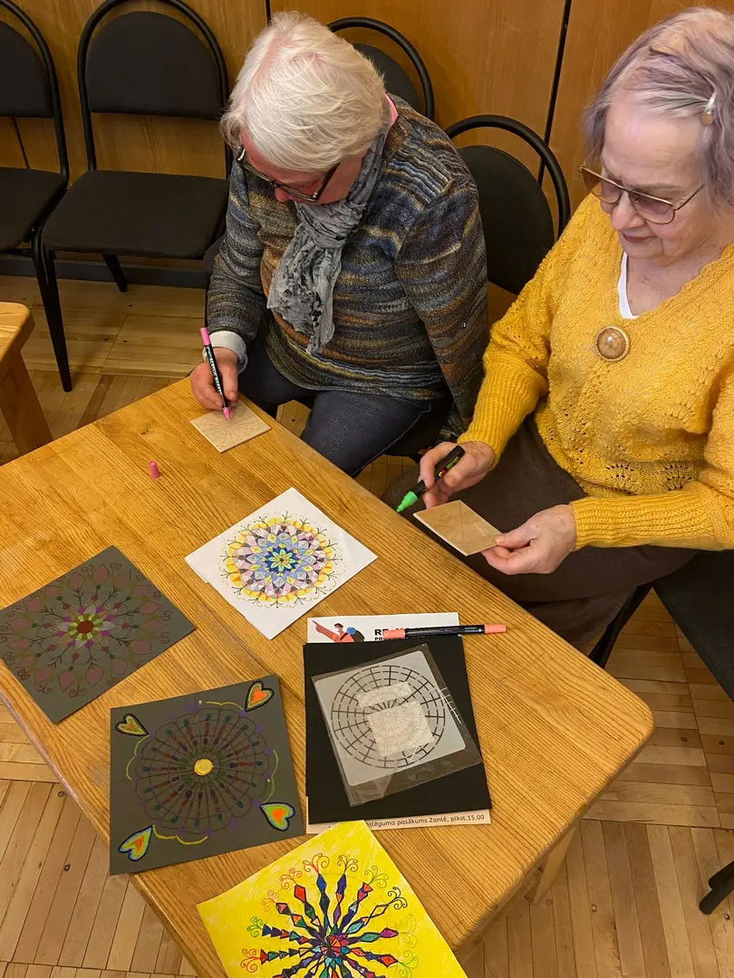 Tikšanās laikā seniori apguva krūzīšu paliktņu apgleznošanu punktiņmandalu tehnikā, radot krāsainus un radošus darbus. Savukārt seniori skolēniem mācīja dažādas dejas un rotaļas, radot priecīgu un sirsnīgu atmosfēru.